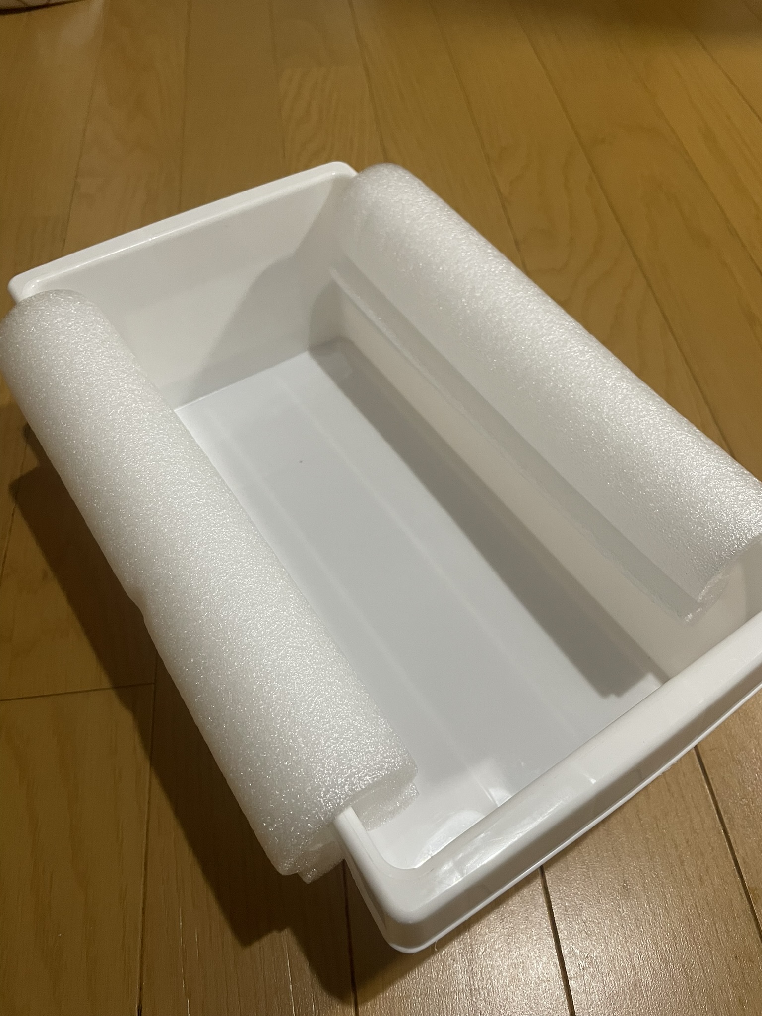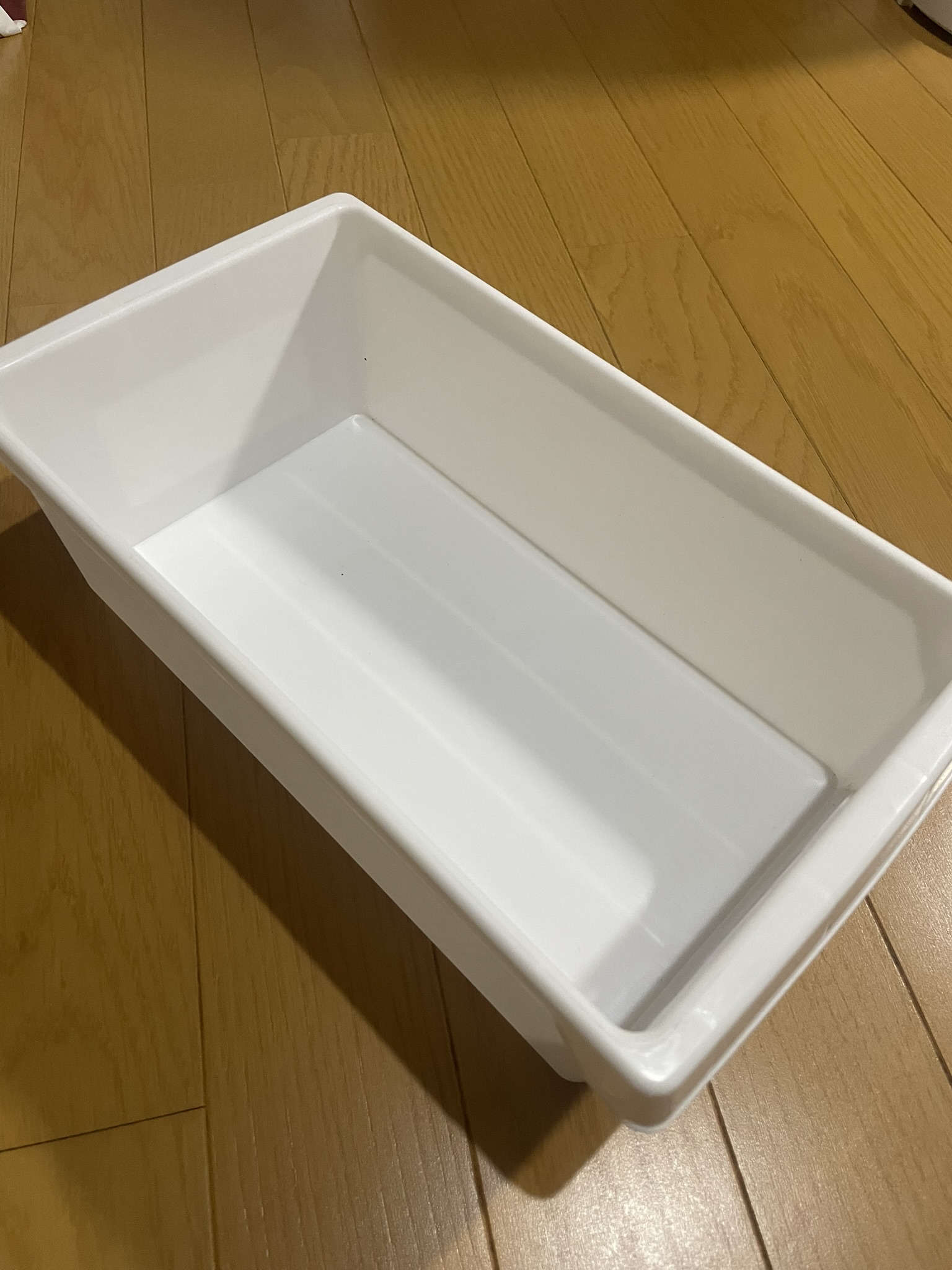 - プラスチック製の収納ケース:できるだけ強度のある、人がまたげる程度の大きさのもの(例:幅18cm×長さ32cm×高さ10cm程度)。