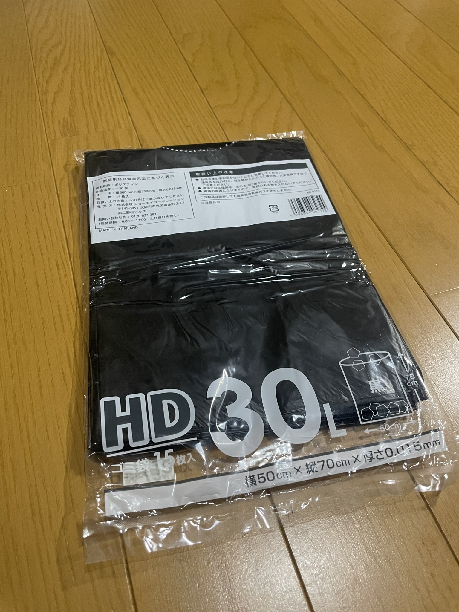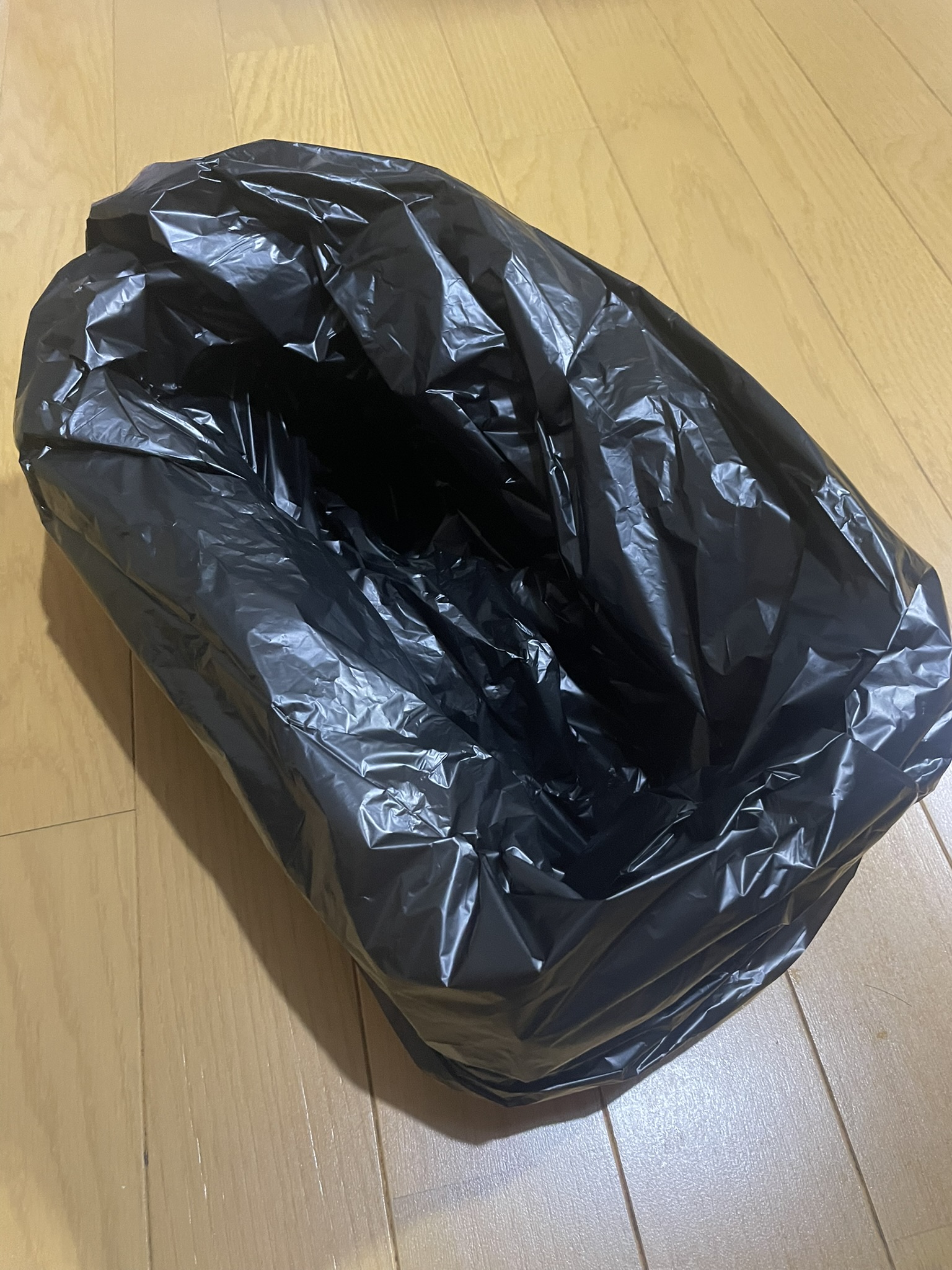 - 大きめのビニール袋:30L〜45L程度の黒いゴミ袋。
